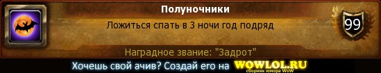 Отвечу по поводу игровых событий. Учитывая что это пве сервер события это важная составляющая потому что их ждать целый год повторения. (кроме рейдеров и пвпешеров есть еще на х1 и ачивоманы) Это достижение входить в достижение Долгое и странное путишествие за которое дают маунта Аметистового прото. Звание странник очень красивое и утентичное. Ну и петик индейка. Так что мы имеем еще ждать года чтоб получить звание, петика и маунта. Тем более все работало просто не засчитывало!!!! Я понимаю когда пишу баг репорт это починят рано или позно. Но отличие игровых событий они актуальны пока идут. Тем более на панде они от этого серва они рабочие сделала на х1 и х100. Лично меня это растроило больше чем ходить без второй леги пол года)).
